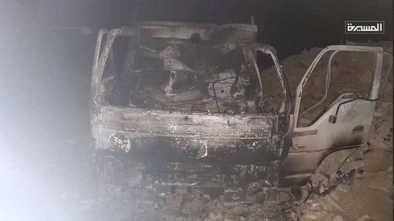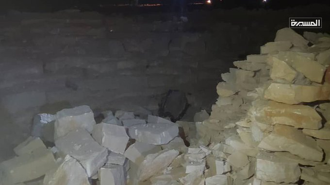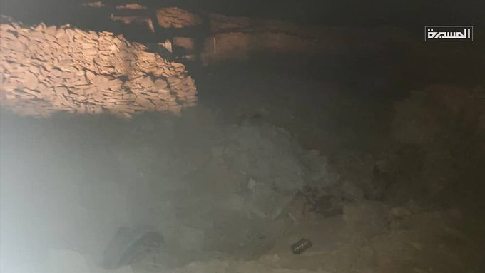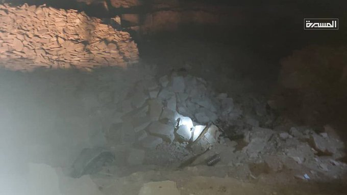 Images posted by @ansarollah_ye reportedly show damage to the stone quarry, where what appear to be metal parts are seen strewn among piles of stones. Another image includes a heavily damaged truck.