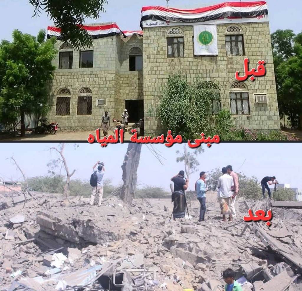 Bashir Ghaleb Al-Khazmi posted a photo collage with images of all four of the men who were killed. Abu Bashar Al-Hamri Badil wished condolences to engineer Ahmed Saeed Abdul Karim Al-Humairi on the loss of his two sons, Wadih and Malek, who were killed “while they were pursuing their civilian studies there”. The post included an image which reportedly shows the Water Authority building before and after the strikes. In the after image, the building can be seen completely destroyed and bystanders can be seen photographing the rubble.