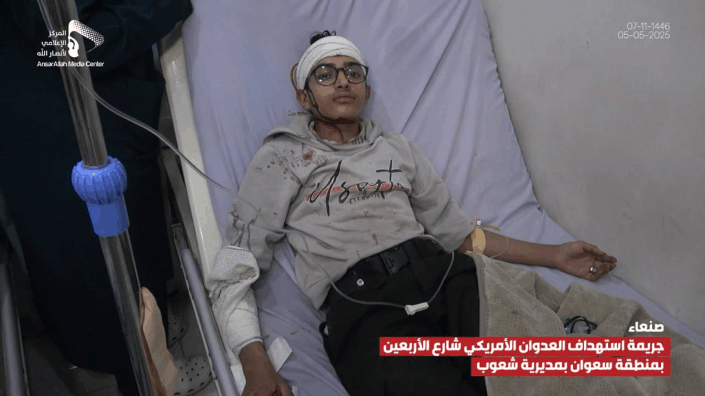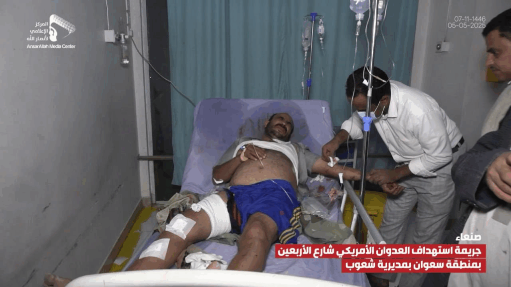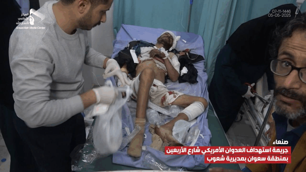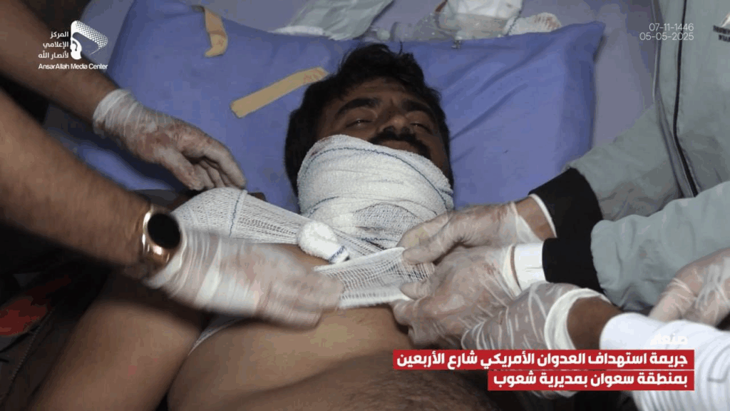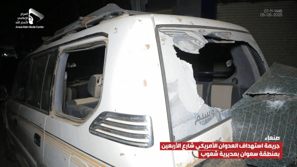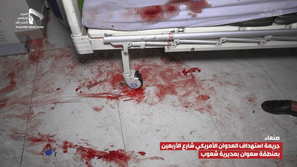 At least 14 people were reported injured by an alleged bombardment on Al-Arbaeen Street in the Sha’oub District of Yemen’s capital, Sana’a on 5 May, 2025. While most sources alleged US involvement, one source claimed the damage was due to a failed Houthi missile launched in an attempt to “intercept a US reconnaissance plane”.