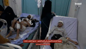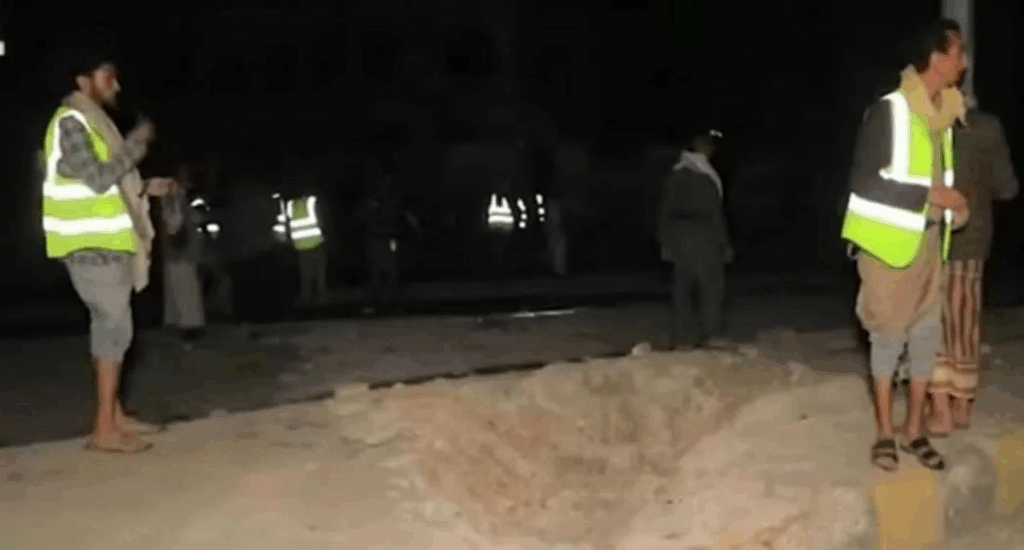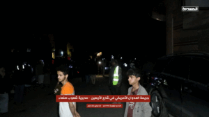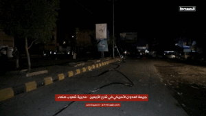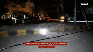 While most users alleged the strike was an act of “US aggression”, Twitter/X user @wdysb495515 attributed the bombardment to the Houthis: “a number of civilians were injured and shops damaged […] as a result of a missile launched by the Houthi militia from the Sarf area to intercept a US reconnaissance plane. The missile failed and fell near the Damran Center mall, leaving a crater in the sidewalk and injuring civilians”.