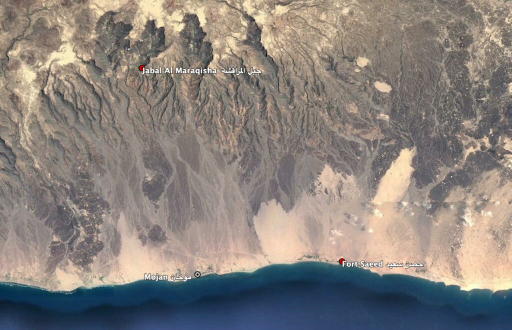 Reports of the incident mention strikes in the Jabal Al Maraqisha (جبل المراقشه) area that includes the coastal portion to the south, allegedly targetting Mojan (موجان), Al Maroun (المرون), Malaj (املج), and Husn Said (حصن سعيد).