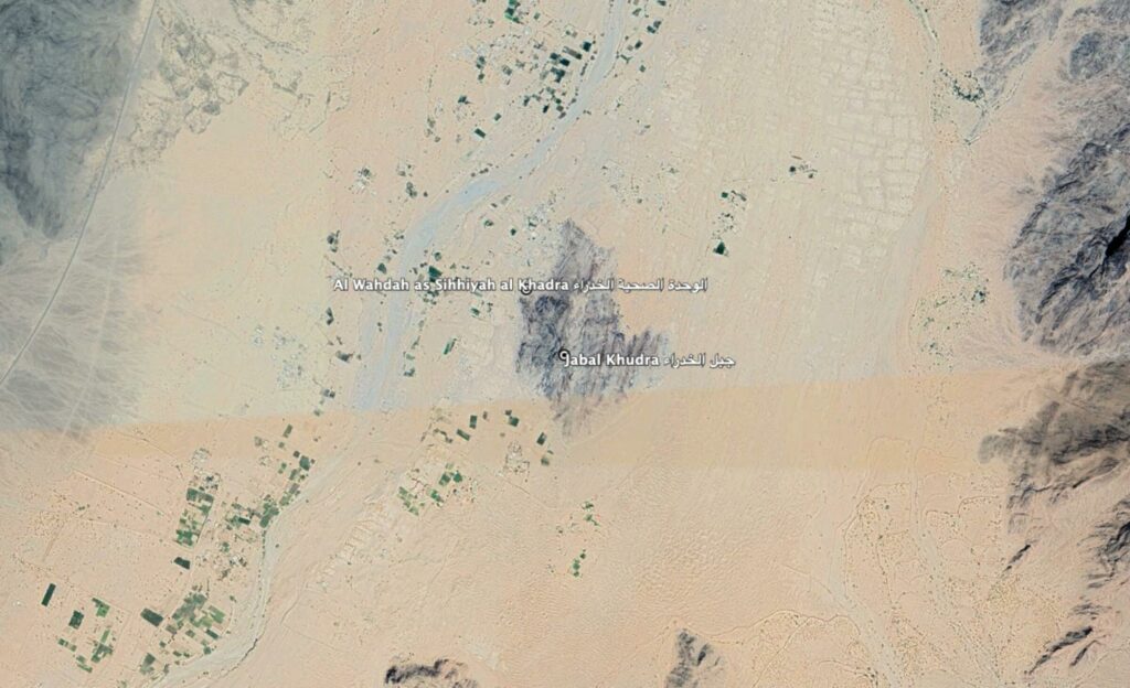Our research finds evidence of a clinic called Al Wahdah as Sihhiyah al Khadra (الوحدة الصحية الخدراء) and a hill called Jabal Khudra (جبل الخدراء), suggesting that Al Khudra is within their area, however, we find no mention of Al Nabeeq in the vicinity.