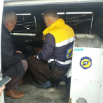 According to SCDAleppo, “one person was killed and two others were injured. The attack on the town of Kalgreen, Azzaz, in the northern part of Aleppo, was caused by mortars originating from the Kurdish protection units. Civil defence teams worked to retrieve the martyr and the wounded.”