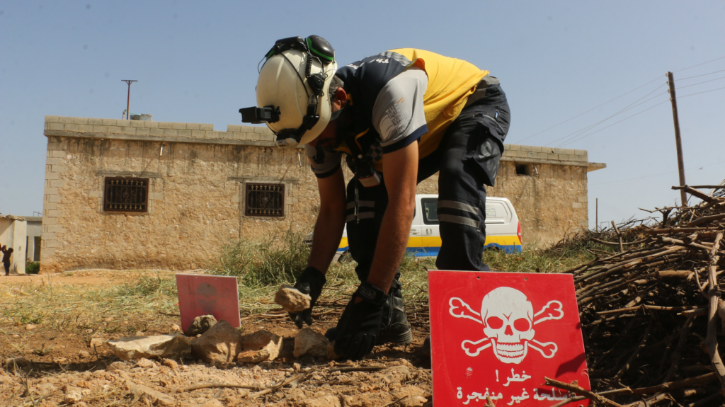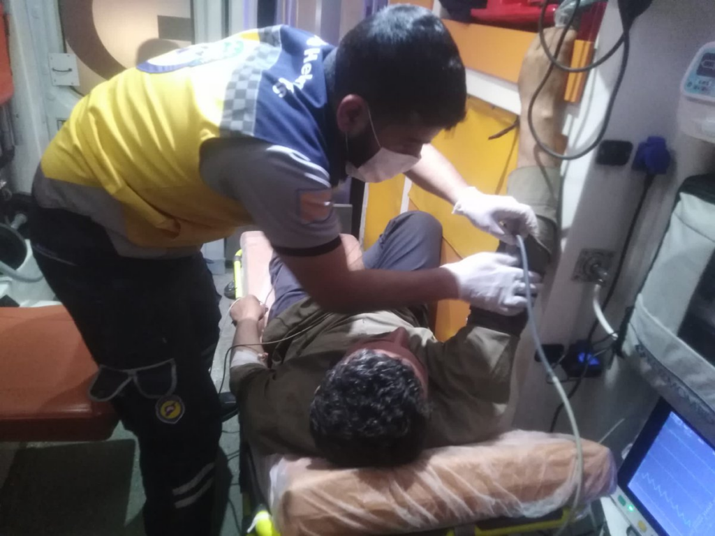 The Syrian Civil Defense organisation reported on Facebook that “a man and child were moderately injured as a result of mortar and missile shelling coming from areas under the joint control of the regime forces and the Syrian Democratic Forces”. Attached to the post was an image of a wounded man or child with dark curly hair dressed in a green shirt and grey trousers receiving treatment in the ambulance.