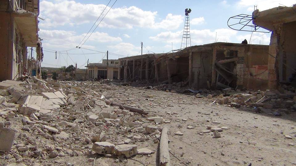 A photograph published by Euphrates Post [see below] showed what appeared to have been a major strike in a built up area of the town. And a video showed significant damage to a civilian neighbourhood, with a vegetable market also reportedly hit.