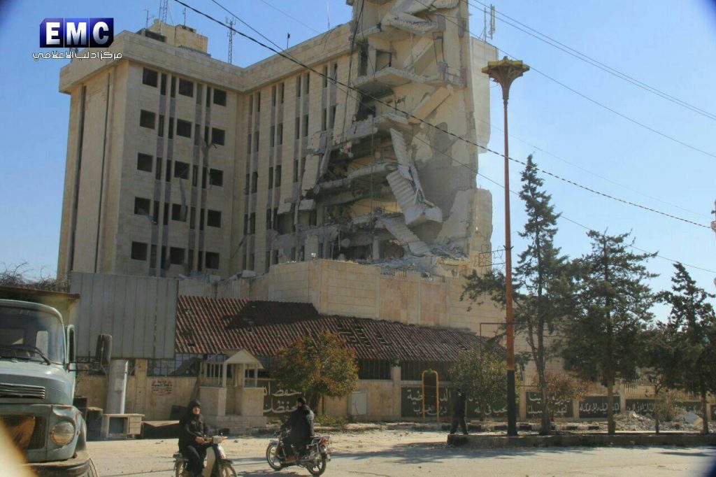 Idlib's Red Crescent hospital, damaged in a reported Coalition strike on February 1st 2017 (via Idlib Media Centre)