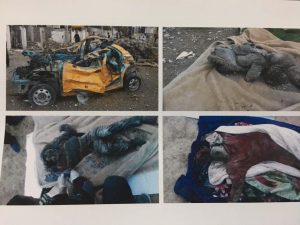 The uncle of the wife: I heard the sound but didn’t immediately go out. We all know it’s never just one or two hits, so it’s not safe to go towards the area that has been struck. After a while, I went out and someone who lives in the neighborhood came running towards me saying it’s the house of my relatives. When I got there and saw the scene, I was certain 100% they were all dead. I thought we’d soon be dead too. When we started to pull them out, they were alive but badly hurt. We put them on wagons [vegetable selling wagons] and took them to the hospital. Daesh does not allow people to use cars. At the time, the army was in Yarmouk. People in Mosul have started buying spaces for graves before their family members die, and even they are running out.”