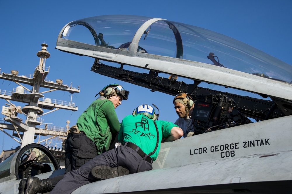 « Le théâtre du Levant est un zone d’opération très riche, qui permet aux équipages de la flottille d’exploiter tous les systèmes embarqués à bord du Hawkeye. La remise en question dans cet environnement dense et complexe est permanente et permet aux plus jeunes d’engranger une grande expérience opérationnelle. Relais radio au profit des avions de la coalition, transmissions d’ordres, détections radar, guerre électronique, c’est notre quotidien», témoigne le capitaine de corvette Ludovic, un des tactical air controller embarqué (TACAé) sur E-2C Hawkeye.