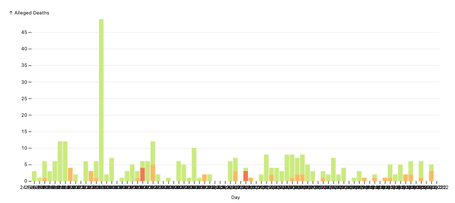Airwars запускає інтерактивну базу даних про цивільні жертви в битві за Харків, виявляючи 275-438 загиблих від вибухової зброї (лют-трав 2022)