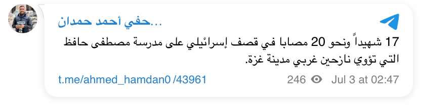 17 martyrs and about 20 injured in an Israeli bombardment of the Mustafa Hafez School, which houses displaced persons west of Gaza City.