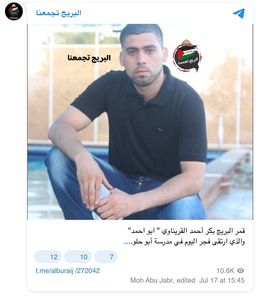 قمر البريج بكر أحمد القريناوي " ابو احمد"والذي ارتقى فجر اليوم في مدرسة أبو حلو....💔 قمر البريج بكر أحمد القريناوي " ابو احمد"والذي ارتقى فجر اليوم في مدرسة أبو حلو....💔