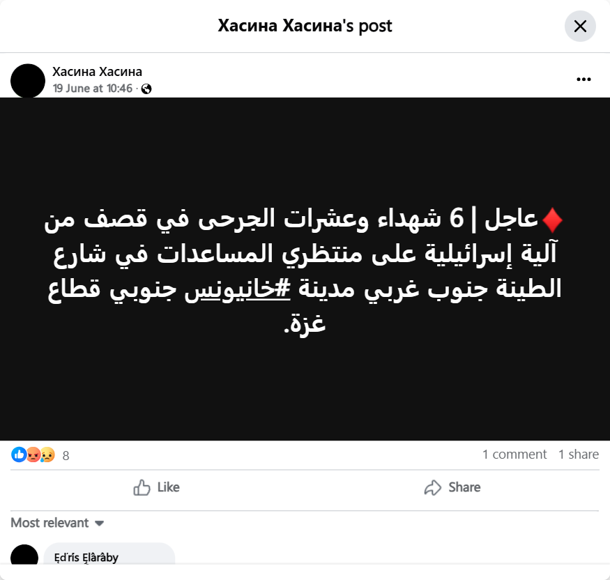 Urgent | 6 martyrs and dozens wounded in an Israeli tank shelling of people waiting for aid in al-Tina Street, southwest of Khan Yunis, southern Gaza Strip.