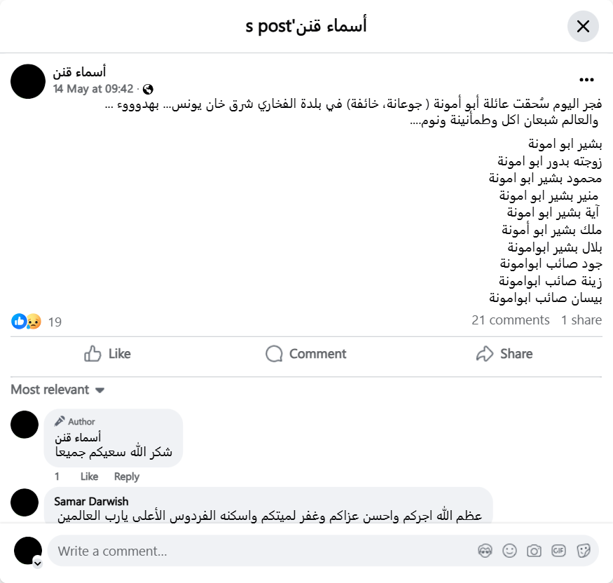 Archive URL: https://airwars.org/source/www-facebook-com-%d8%a3%d8%b3%d9%85%d8%a7%d8%a1-%d9%82%d9%86%d9%86-pfbid02uuhjm1mrukeozhx7xytnlvxdhyxpgremnzyzadl6cff7akgihn2j6abjnatpbgkbl-2025-05-14-074200/