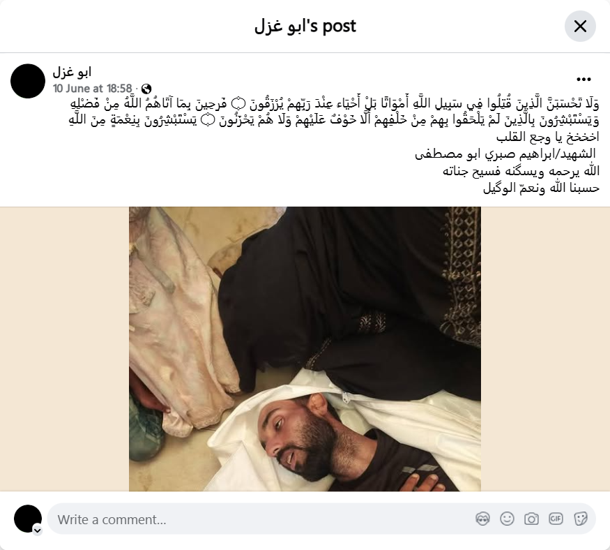 And never think that those who have been killed in the cause of Allah are dead. Rather, they are alive with their Lord, and they are provided for. Rejoicing in what Allah has given them of His bounty and they rejoice for those who have not yet joined them from behind them that there is no fear concerning them, nor will they grieve. Rejoicing in favor from Allah. Oh, the pain of the heart, the martyr/Ibrahim Sabry Abu Mustafa. May Allah have mercy on him and grant him a spacious place in Paradise. Allah is sufficient for us, and He is the best Disposer of affairs. reactions:1010 15 comments Like Comment Share Most relevant Muhammad Saeed, may God have mercy on him 4d Like Reply Yasmine Farid, may God have mercy on him and forgive him, may God give you patience and comfort 4d Like Reply Suha Umm Jude, may God have mercy on him 3d Like Reply Hala Dagga, may God have mercy on him 3d Like Reply Muhammad Ibn Azeem Al-Tarabani, may God have mercy on him and forgive him 3d Like Reply Abu Abdullah, may God have mercy on him and forgive him 3d Like Reply Ali Muqdad, may God have mercy on him and make his abode in Paradise 3d Like Reply Hassan Abu Alian, may God have mercy on him and grant him a place in His spacious Paradise 3d Like Reply Ahmed Azaam, may God have mercy on him and forgive him and grant him a place in His spacious Paradise 3d Like Reply Ahmed Said, may God have mercy on him and forgive him 3d Like Reply Facebook Facebook Facebook Facebook Facebook Facebook Facebook Facebook
