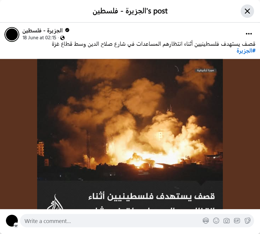 Shelling targets Palestinians waiting for aid on Salah al-Din Street in the central Gaza Strip.
