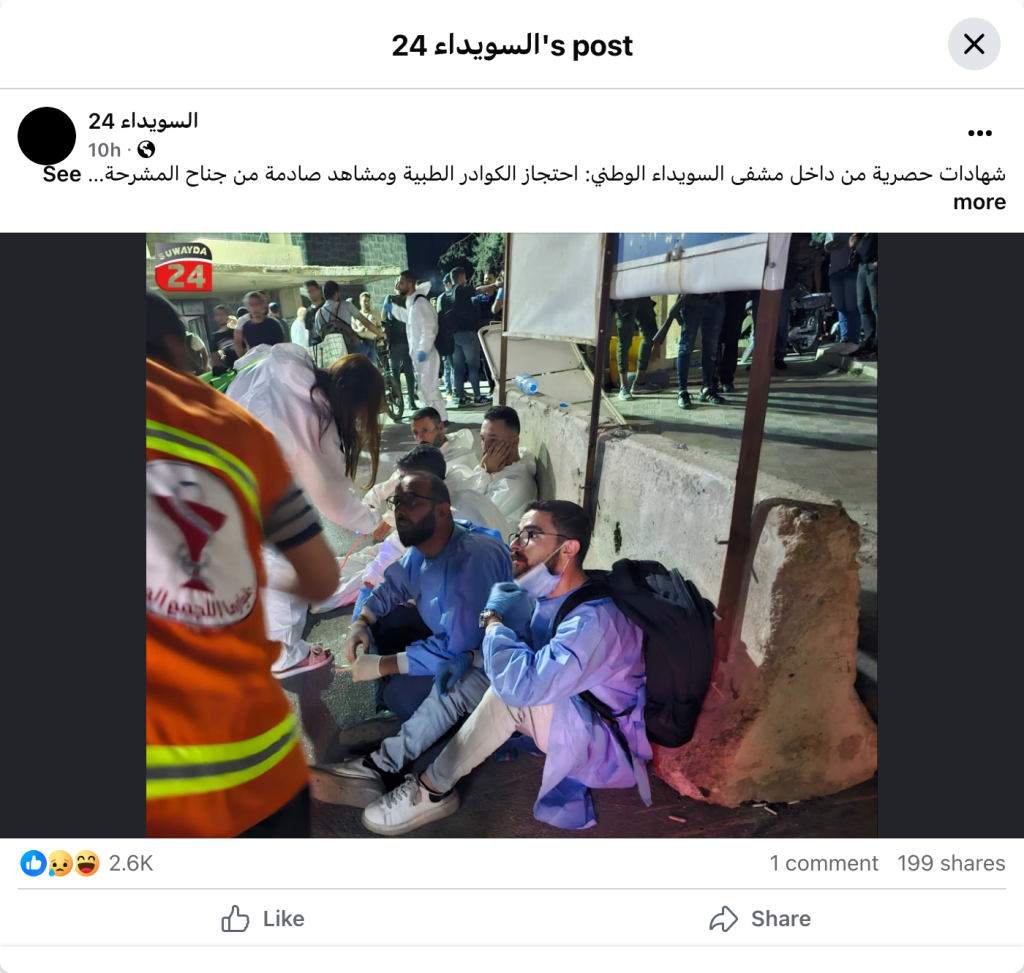 شهادات حصرية من داخل مشفى السويداء الوطني: احتجاز الكوادر الطبية ومشاهد صادمة من جناح المشرحة… See more