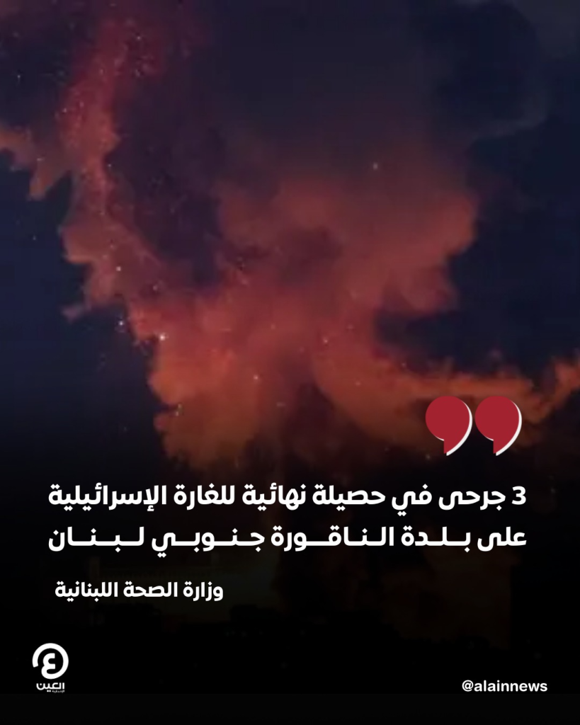 وزارة الصحة اللبنانية: 3 جرحى في حصيلة نهائية للغارة الإسرائــ.ـــيلية على بلدة الناقورة جنوبي لبنان