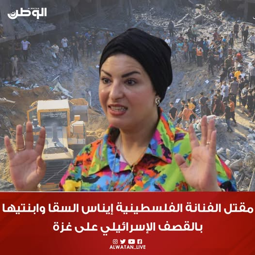 قُتلت الفنانة الفلسطينية إيناس السقا مع ابنتيها لين وسارة خلال القصف الإسرائيلي على مدينة غزة، فيما أصيب أبناؤها إبراهيم وريتا وفرح بجروح بالغة.