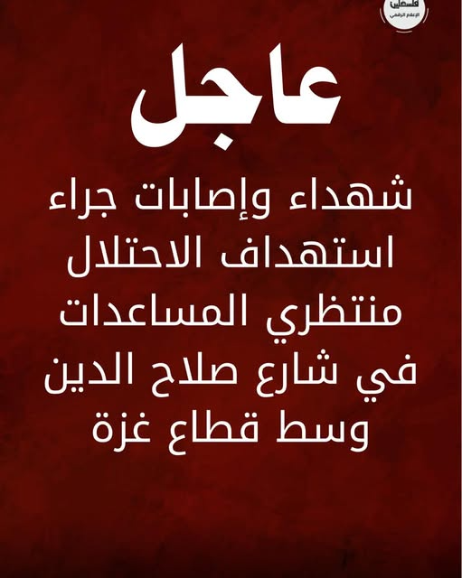 Martyrs and injuries as a result of the occupation targeting those waiting for aid on Salah al-Din Street in the central Gaza Strip. All reactions: 282282