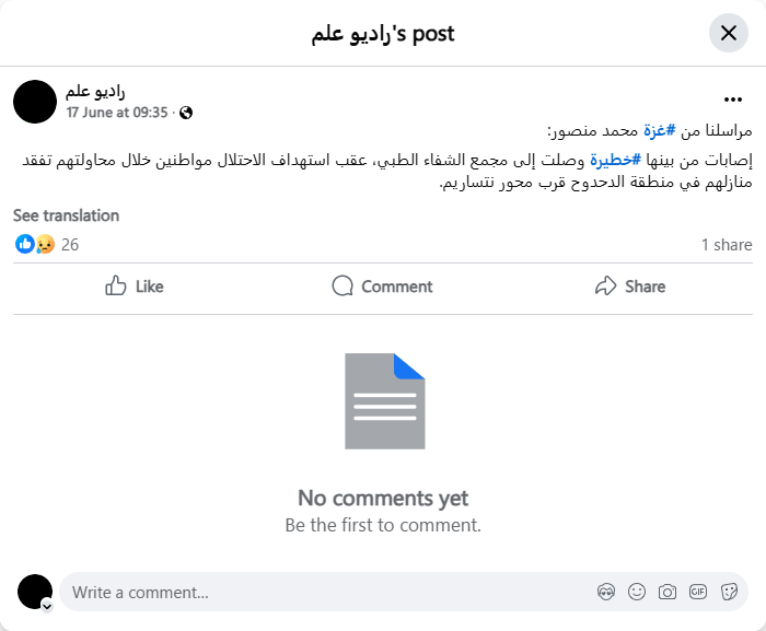 Our correspondent from #Gaza, Mohammed Mansour: Injuries, some of them serious, arrived at Al-Shifa Medical Complex after the occupation targeted citizens while they were trying to check on their homes in the Al-Dahdouh area near the Netzarim axis.