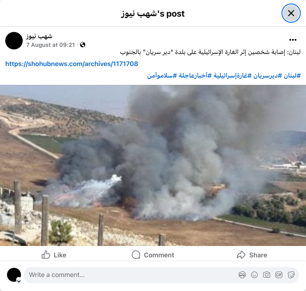 لبنان: إصابة شخصين إثر الغارة الإسرائيلية على بلدة “دير سريان” بالجنوب