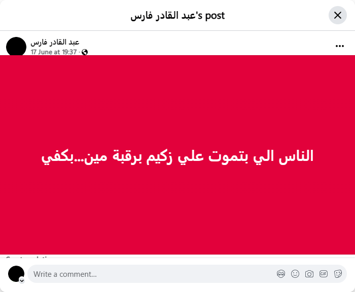 URL: https://www.facebook.com/bdalqadrfars.820973/posts/pfbid0sLZK3VEpvRRjjdsi623RLb1K7tJM3ka1gMqUYr89D4iBksK6btB8VLJfHztFr9xCl