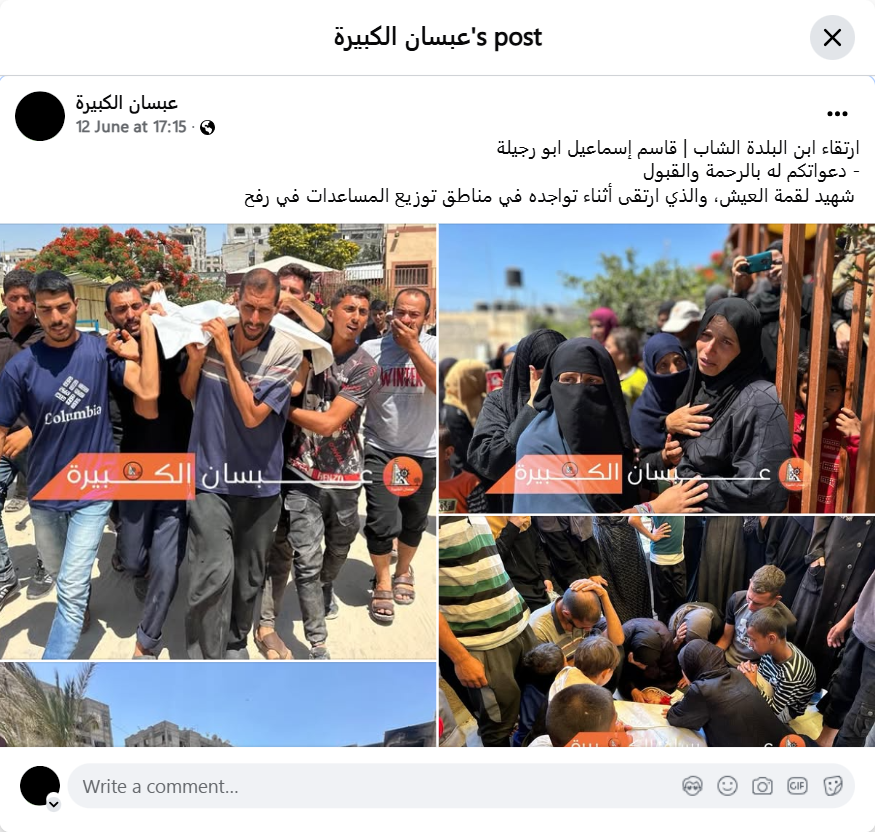 ارتقاء ابن البلدة الشاب | قاسم إسماعيل ابو رجيلة - دعواتكم له بالرحمة والقبول شهيد لقمة العيش، والذي ارتقى أثناء تواجده في مناطق توزيع المساعدات في رفح