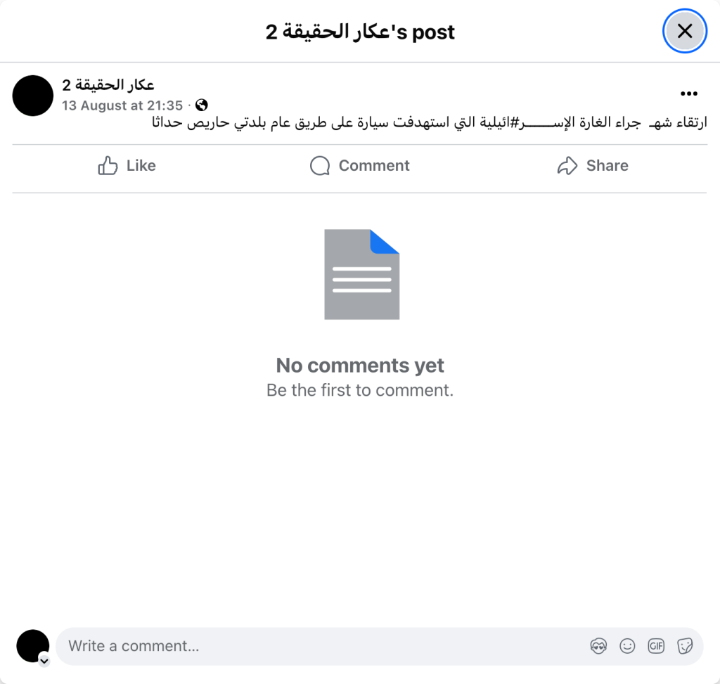 ارتقاء شهـ جراء الغارة الإســــــر#ائيلية التي استهدفت سيارة على طريق عام بلدتي حاريص حداثا