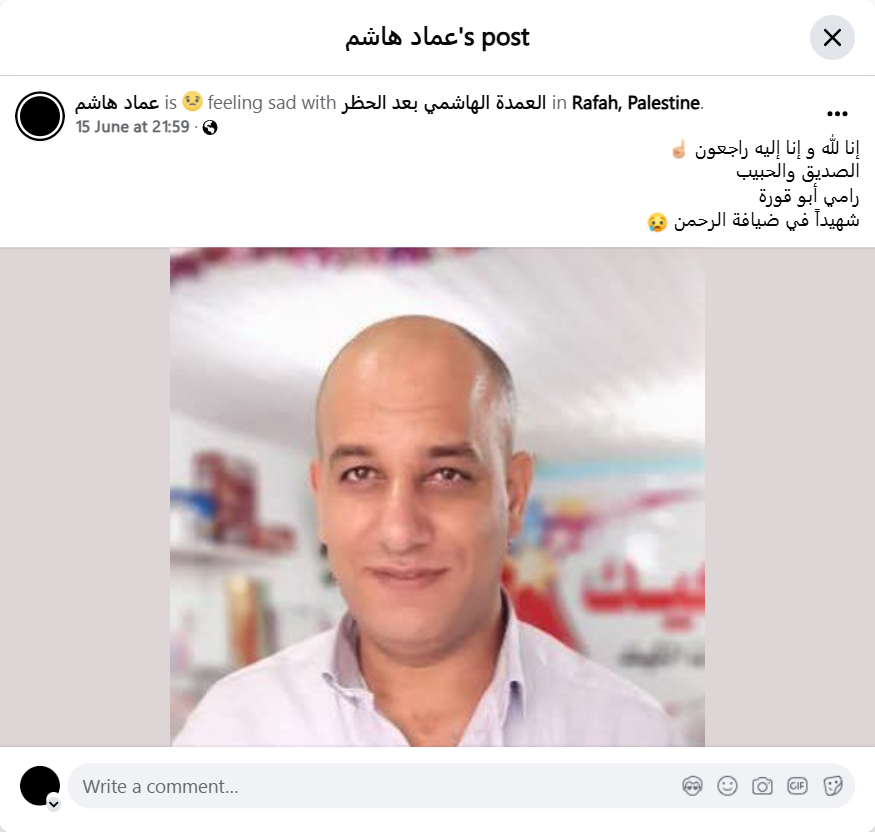 We belong to Allah and to Him we shall return. Our friend and beloved Rami Abu Qura was martyred in the care of God.