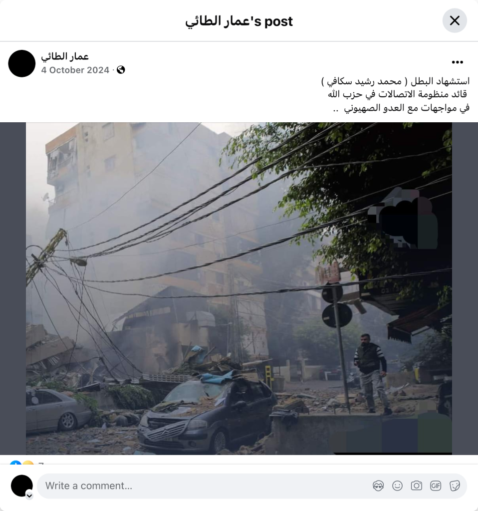 Archive URL: https://airwars.org/source/www-facebook-com-%d8%b9%d9%85%d8%a7%d8%b1-%d8%a7%d9%84%d8%b7%d8%a7%d8%a6%d9%8a-pfbid02ktx8b7bajbmwvgracybijuk3mlq3bog9pq4ttjctfw36qree7mqfezzxtjexh14fl-2024-10-04-090000/