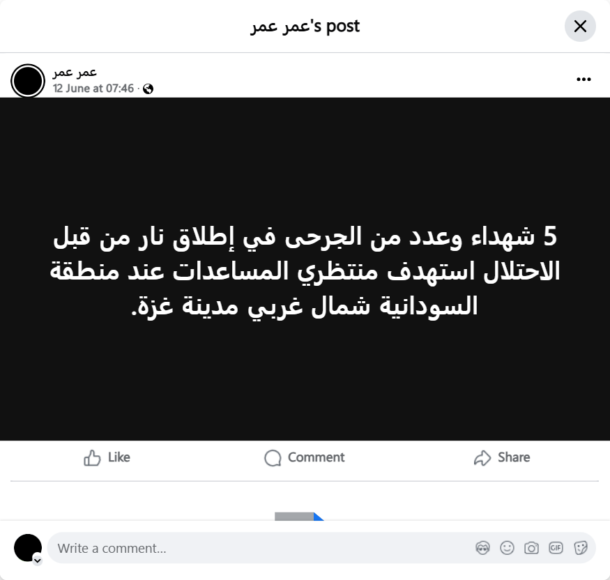 5 martyrs and a number of wounded in an Israeli shooting targeting people waiting for aid in the Sudanese area, northwest of Gaza City.
