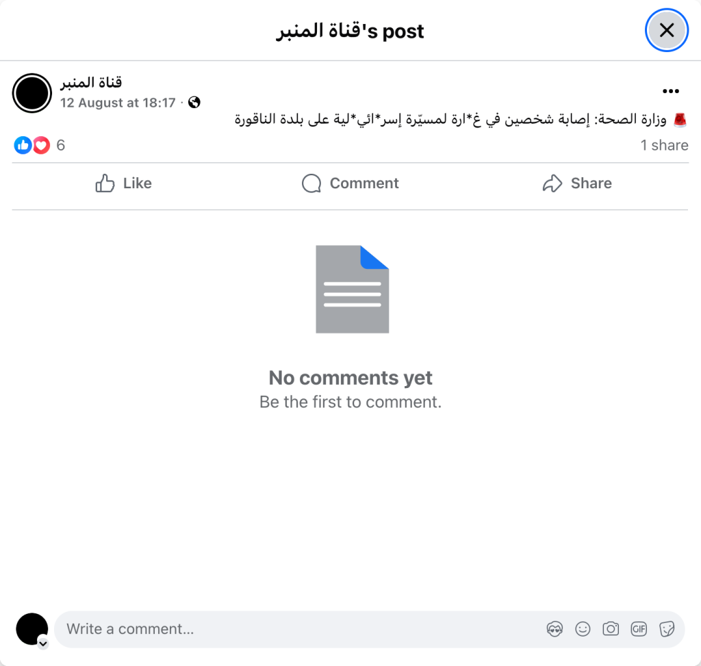 Ministry of Health: Two people were injured in an Israeli drone strike on the town of Naqoura.