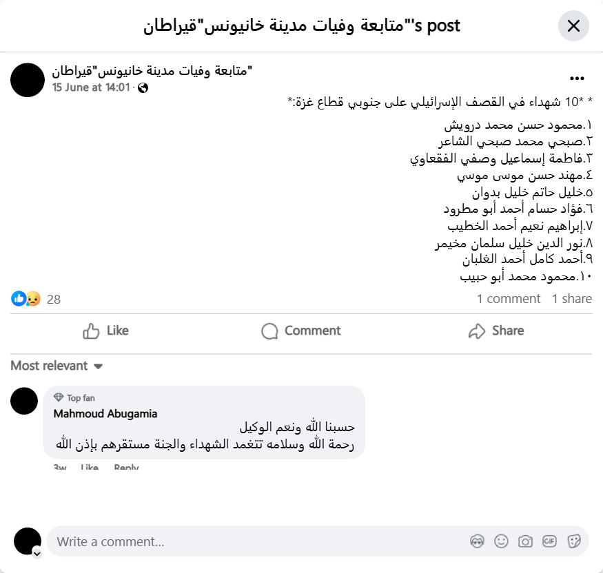 Author: متابعة وفيات مدينة خانيونس"قيراطان"