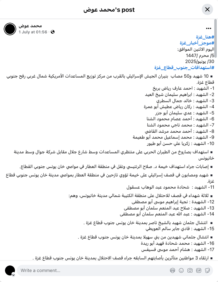 Archive URL: https://airwars.org/source/www-facebook-com-%d9%85%d8%ad%d9%85%d8%af-%d8%b9%d9%88%d8%b6-pfbid033hye7bjdrmchju7y6mvaohu6r4nscedyof2e8wbux85guxmdtjuvybogsdzdefful-2025-06-30-225600-20/