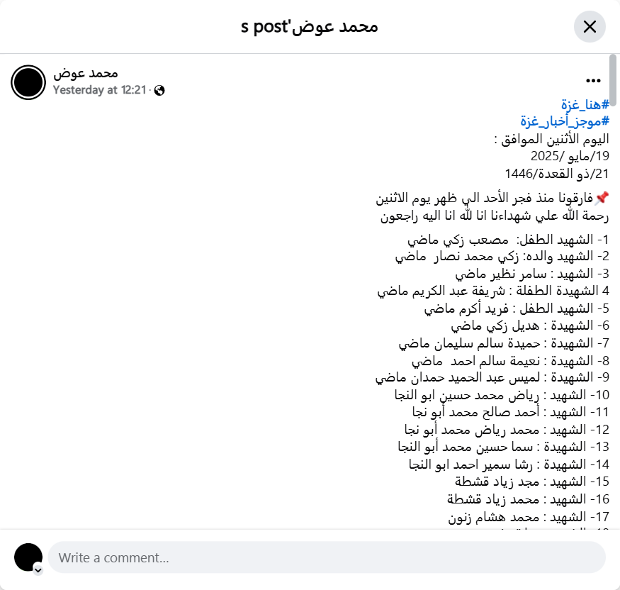- The martyr: Khaled Ahmed Abu Seif 83 - The martyr: his wife, the media figure: Nour Qandil 84 - The martyr: their daughter 85 - The martyr: Yara Muhammad Sabah 86 - The martyr: Muhammad Hanideq