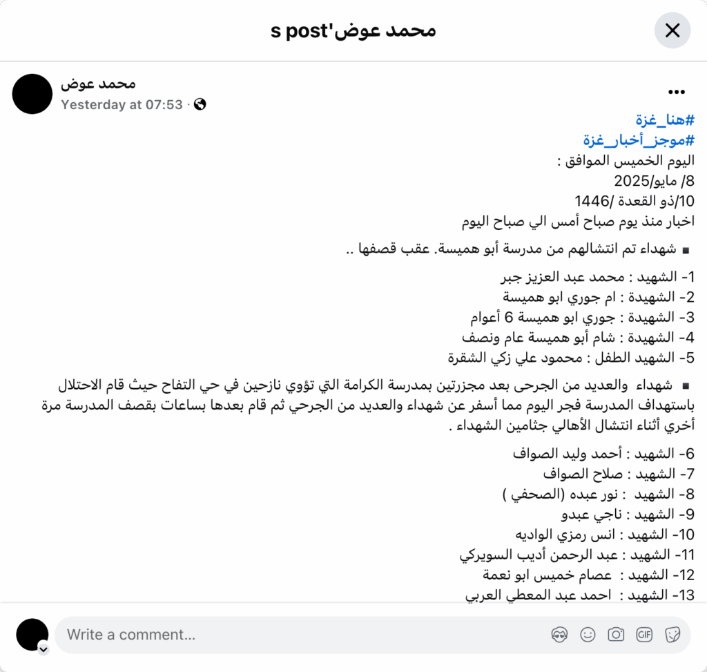 Archive URL: https://airwars.org/source/www-facebook-com-%d9%85%d8%ad%d9%85%d8%af-%d8%b9%d9%88%d8%b6-pfbid0g33hffz4imikgjmfxqe8vy6leldlp3tpdskk7dbjwj6iji9b5cxe55bzfqebsczrl-2025-05-08-045300-2/