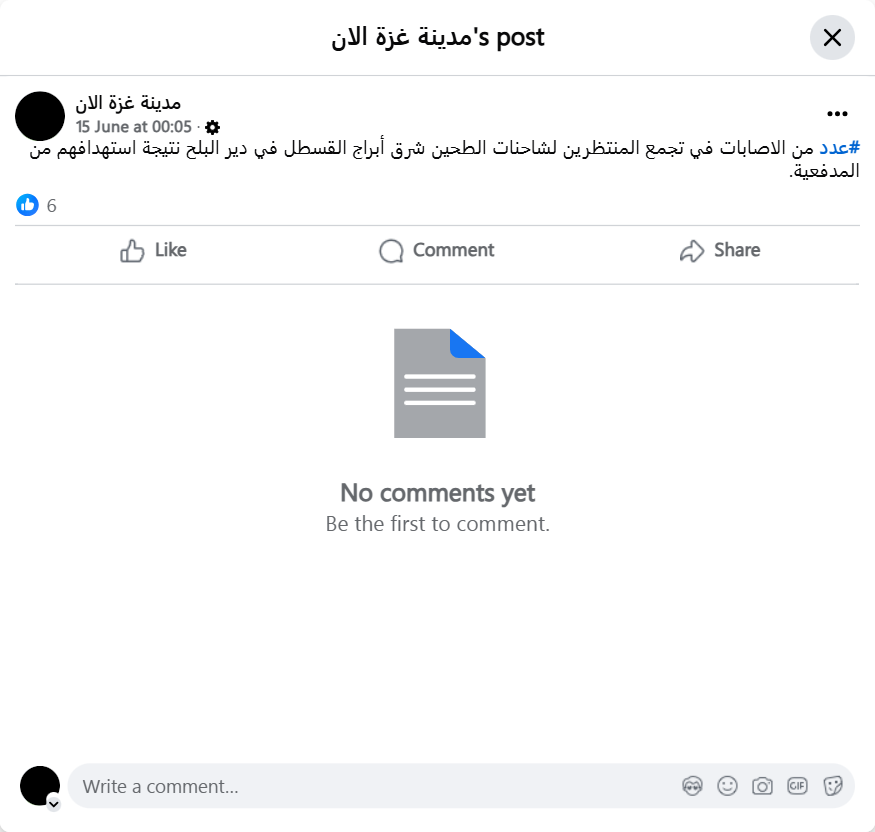 Archive URL: https://airwars.org/source/www-facebook-com-%d9%85%d8%af%d9%8a%d9%86%d8%a9-%d8%ba%d8%b2%d8%a9-%d8%a7%d9%84%d8%a7%d9%86-pfbid02o7gk6n89tzppflmopa8g6wgva68aneqssfycjhqaa38hts5j5ztykpijmayncn1gl-2025-06-14-220500/