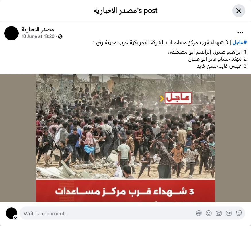 #Urgent | 3 martyrs near the American company's aid center west of Rafah city: 1- Ibrahim Sabry Ibrahim Abu Mustafa 2- Muhannad Hussam Fayez Abu Alian 3- Issa Fayed Hassan Fayed All reactions: 2929