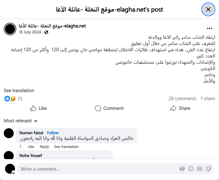 The death of the young man, Samer Zaki al-Agha, and his mother.