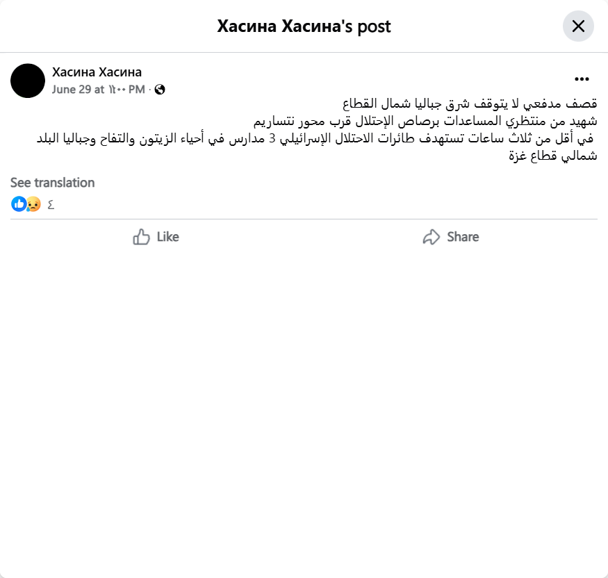 A Palestinian waiting for aid was martyred by the occupation forces' bullets near the Netzarim axis.