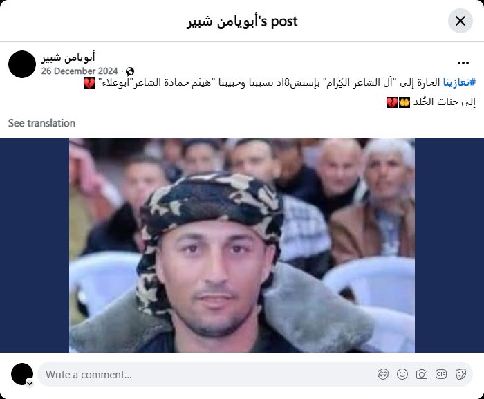 #تعازينا الحارة إلى "آل الشاعر الكِرام" بإستش8اد نسيبنا وحبيبنا "هيثم حمادة الشاعر"أبوعلاء"