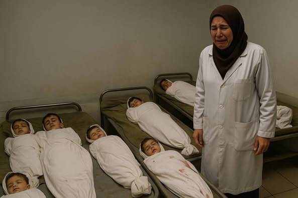 الدكتورة آلاء النجار… كانت على راس عملها في مستشفى ناصر، وبدل ان تستقبل مرضى، استقبلت أصعب لحظة في حياتها وِصلوها أولادها السبعة شهداء … متفحمين اشلاء