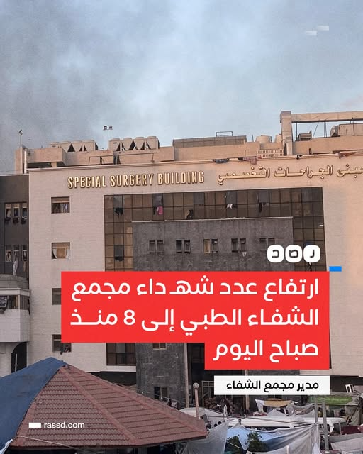 تغطية صحفية | مدير مجمع الشفاء الطبي في غزة يقول إن عدد الشهـ ـداء داخل المجمع وصل إلى 8، وتزايدت أعداد المصابين فيه