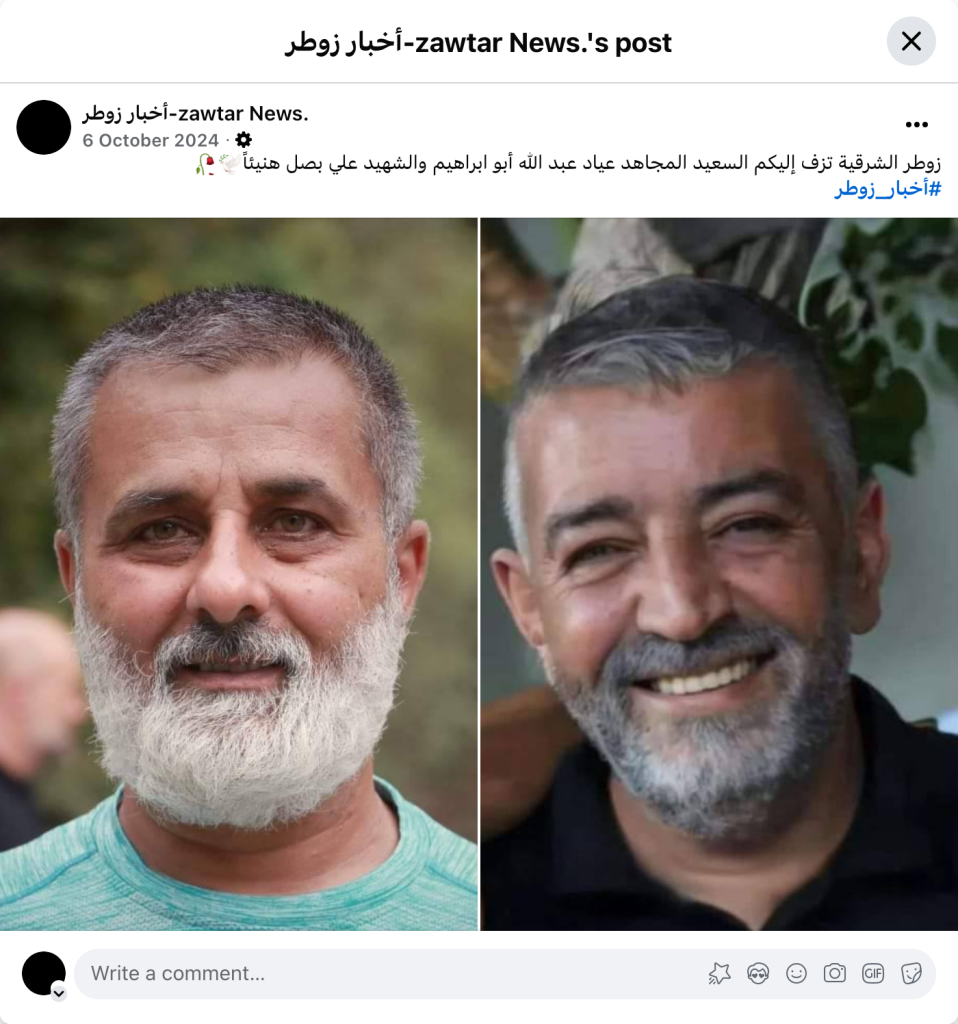 زوطر الشرقية تزف إليكم السعيد المجاهد عياد عبد الله أبو ابراهيم والشهيد علي بصل هنيئاً