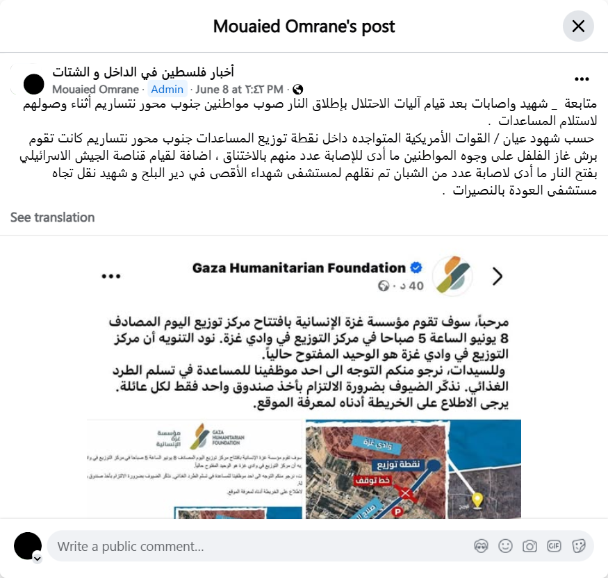 حسب شهود عيان / القوات الأمريكية المتواجده داخل نقطة توزيع المساعدات جنوب محور نتساريم كانت تقوم برش غاز الفلفل على وجوه المواطنين ما أدى للإصابة عدد منهم بالاختناق
