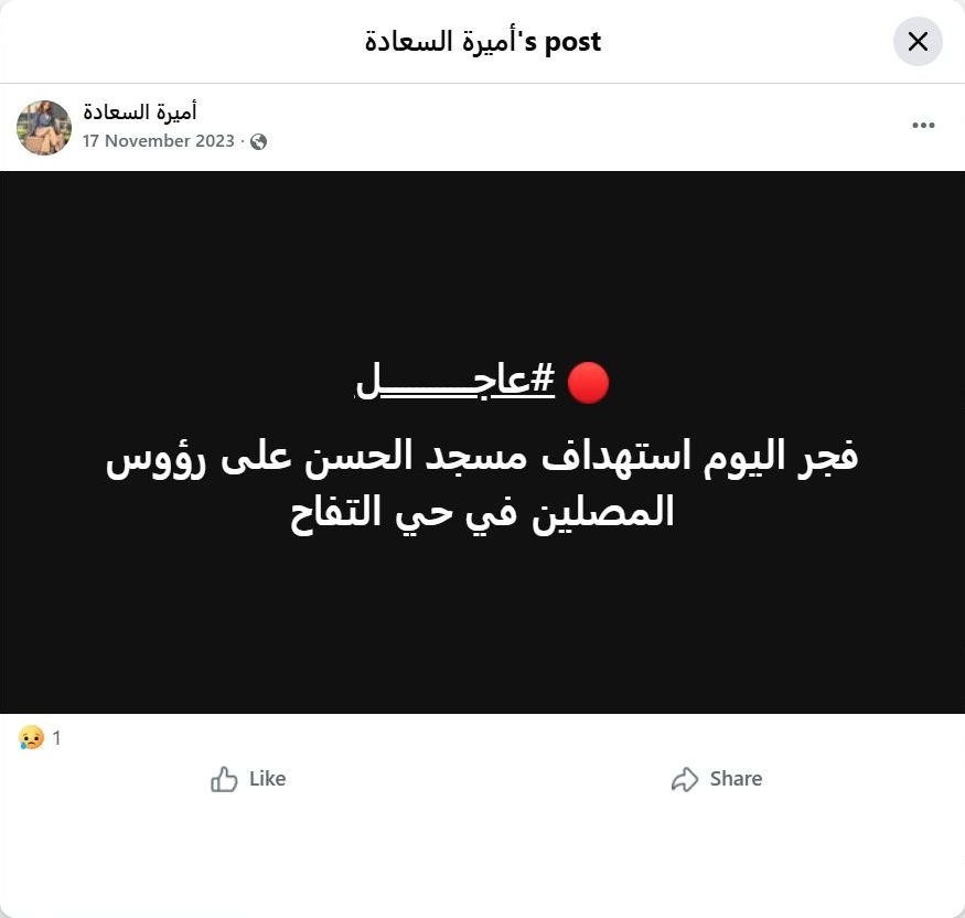 This morning, Al-Hassan Mosque was targeted while worshippers were inside in the Al-Tuffah neighborhood.