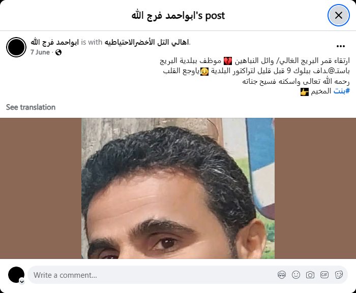 The passing of the dear Qamar Al-Bureij/ Wael Al-Nabahin