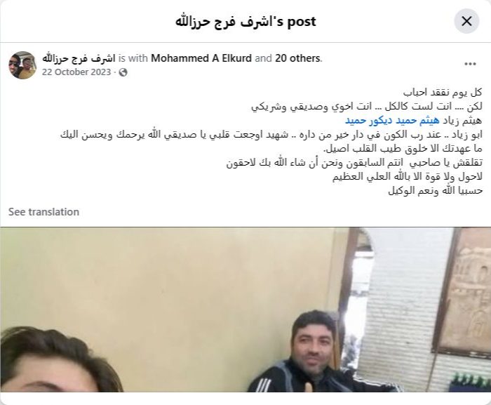 Haitham Ziad, Haitham Hamid, Decor Hamid, Abu Ziad... with the Lord of the Universe in a home better than his own... a martyr. You broke my heart, my friend. May God have mercy on you and be kind to you.