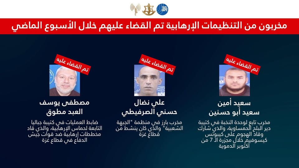 كما قضت قواتنا على المدعو سعيد أمين سعيد أبو حسنين – مخرب تابع لوحدة النخبة في كتيبة دير البلح التابعة لمنظمة حماس الإرهابية، والذي شارك وقاد الهجوم على كيبوتس كيسوفيم خلال مجزرة السابع من أكتوبر الدموية.