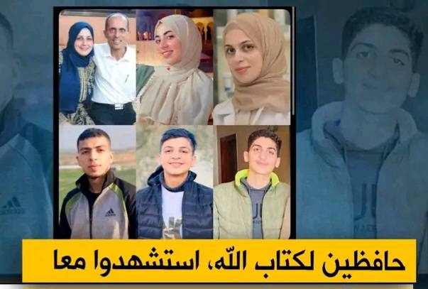 {And never think that those who have been killed in the cause of Allah are dead. Rather, they are alive with their Lord, and they are provided for, rejoicing in what Allah has given them of His bounty and they rejoice for those who have not yet joined them from behind them that there is no fear concerning them, nor will they grieve.} With all the words of sadness and pain that I found, and with a heart that is broken and sad: The martyrdom of all members of my beloved family, the love of my heart, my father, Dr. Rafiq Musa Ayesh, my dear and caring mother, Iman Ayesh (Mutar), and my sweet and beautiful sisters, Dr. Wafaa and Ms. Duaa Ayesh, and my brothers, the soul of my heart, the guardians of The Holy Quran, M. Muhammad, Yassin and Omar are alive. What consoles me is that you have attained what you wished for in the eternal gardens, God willing. I consider you all martyrs with God and that He will reunite me with you soon. I wish to remain in your arms all my life. I have no energy left after you, my life. Why did you leave me alone? I have been destroyed. Take me with you. God is sufficient for me, and He is the best Disposer of affairs.